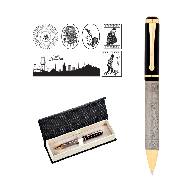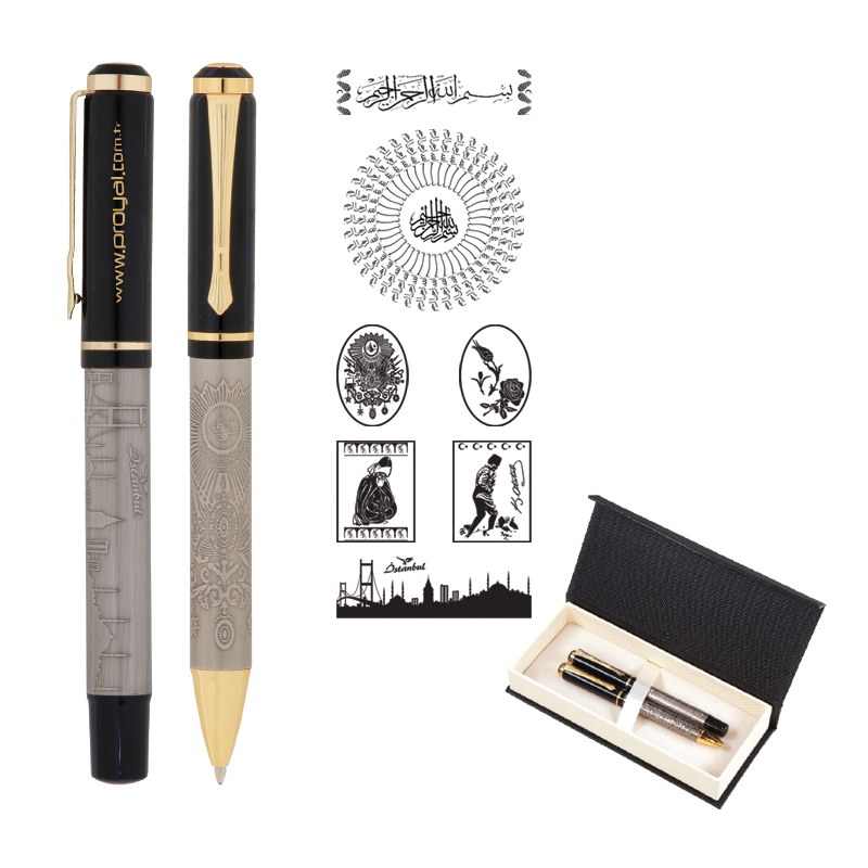 661-KT 41 Besmele Kabartma Figürlü Metal Tükenmez Kalem Seti